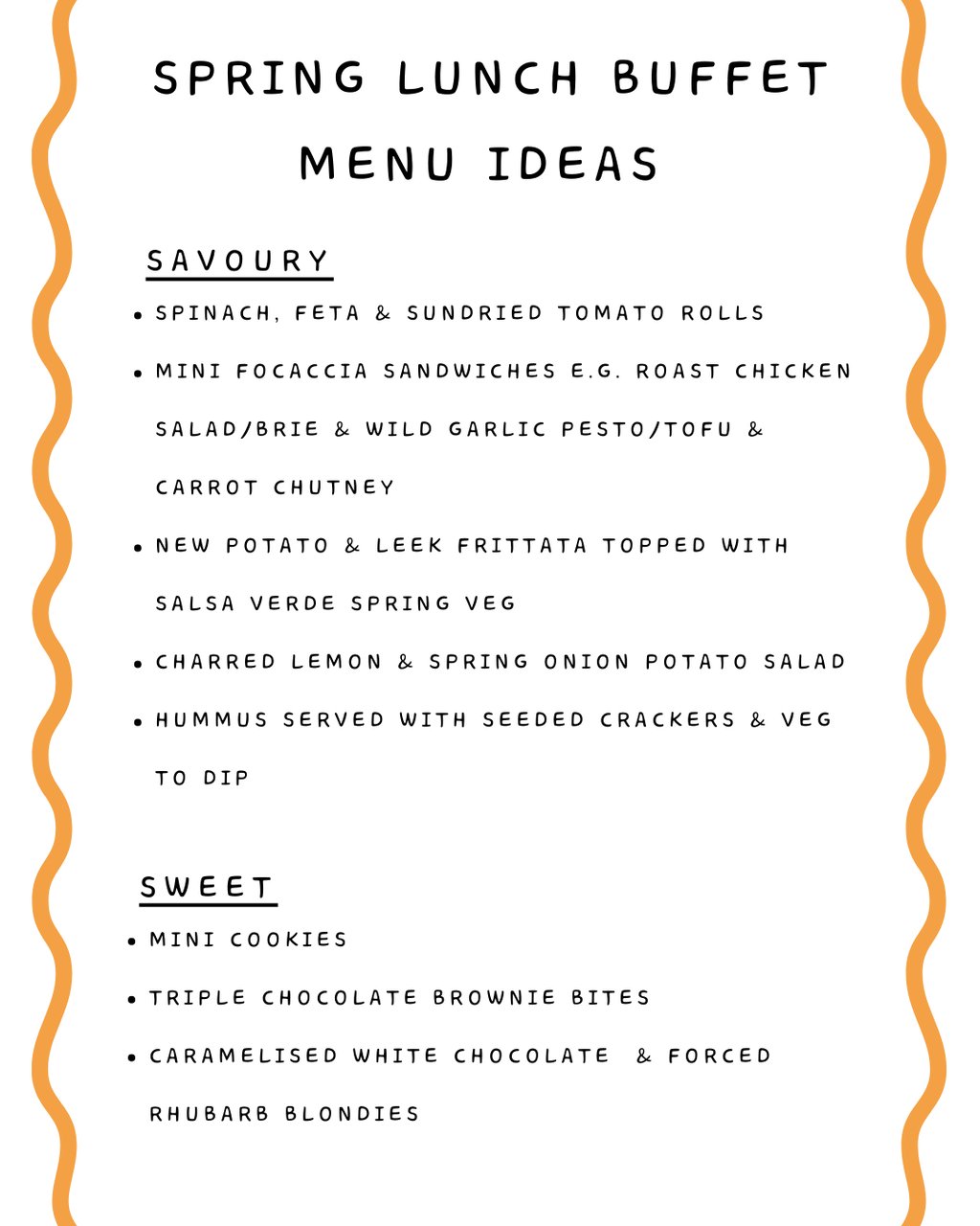 We don't offer set menus - but below you'll find some samples to get a flavour of the kind of food we love to make! We update these seasonally and are always up for working with you to create a bespoke menu for your event